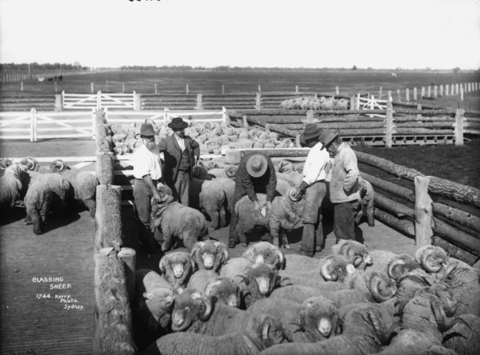 | Keywords: Classing sheep (2485155550).jpg Format Glass plate negative Rights Info No known restrictions on publication Repository Tyrrell Photographic Collection Powerhouse Museum http //www powerhousemuseum com/collection/database/collection The_Tyrrell_Photographic www powerhousemuseum com/collection/database/collection The_Tyrrell_Photographic Part Of Powerhouse Museum Collection General information about the Powerhouse Museum Collection is available at http //www powerhousemuseum com/collection/database www powerhousemuseum com/collection/database Persistent URL http //www powerhousemuseum com/collection/database/ irn 30246 http //www powerhousemuseum com/collection/database/ irn 30246 Acquisition credit line Gift of Australian Consolidated Press under the Taxation Incentives for the Arts Scheme 1985 http //www flickr com/photos/powerhouse_museum/2485155550/ Classing sheep Uploaded by Fæ http //www flickr com/people/24785917 N03 Powerhouse Museum from Sydney Australia PD-Australia File Upload Bot Magnus Manske 2013-01-13 Farmers Sheep Black and white photographs of men Merino Sheep in Australia Wool Photos uploaded from Flickr by Fæ using a script Pens enclosures Flickr-Powerhouse-Museum-image |