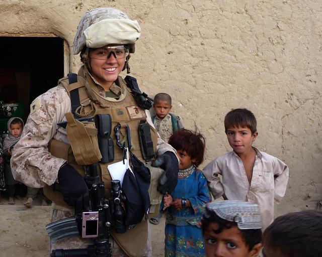 Keywords: CLB-6 FET Members Hit Streets of Helmand for Intel During Initial Mission DVIDS263243.jpg en Cpl Monica Boucher a field radio operator with Combat Logistics Battalion 6 Marine Expeditionary Brigade-Afghanistan mingles with a group of Afghan children during her first Female Engagement Team mission in Helmand province Feb 26 Boucher spent approximately one week aboard Combat Outpost Shur where she assisted the Marines of Fox Company 2nd Battalion 2nd Marine Regiment by making friendly contact with female residents Photo by Lance Cpl Yahaira Cosme 2010-02-26 https //www dvidshub net/image/263243 263243 2010-03-26 07 01 HELMAND PROVINCE AF PD-USGov Helmand Province in the War in Afghanistan 2001-present Images from DoD uploaded by Fæ |