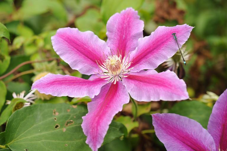 Keywords: clematis flower blossom bloom climber garden nature dragonfly insect