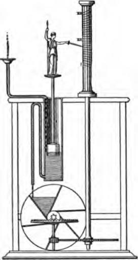 | Keywords: Clepsydra-Diagram-Fancy.png Diagram of a fancy clepsydra Water enters and raises the figure which points at the current hour for the day Spillover water operates a series of gears that rotates a cylinder so that hour lengths are appropriate for today's date The ancient Greeks and Romans had twelve hours from sunrise to sunset; since summer days are longer than winter days summer hours were longer than winter hours Harry C Brearly Time Telling through the Ages Doubleday Page Co for Robert H Ingersoll Bro New York page 55 Digitized by Google Books on 2005-08-04 http //books google com/books/pdf/Time_Telling_Through_the_Ages pdf id 5Cjm14CkQZwC output pdf sig WUJztPPD78FuXpcn9JSIg-6kBLs 1919 artist unknown but the art director of the book was Walter D Teague Image Clepsydra-Diagram-Fancy jpeg PD-old Old water clocks prints 1910s diagrams Ancient Roman technology Ancient Roman time keeping Ctesibius's water clock |