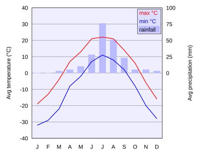 | Keywords: Climate chart of Ulan Bator.svg A climate chart of Ulan Bator Ulaanbaatar Mongolia The red line depicts daytime high; blue is nighttime low Self-made in gnuplot source Data obtained from http //www bbc co uk/weather/world/city_guides/results shtml tt TT002630 BBC Weather Centre 2007-08-02 Mysid Climate diagrams of Ulan Bator |