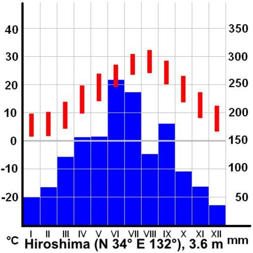 Keywords: ClimateHiroshimaJapan.png Climate diagram of Hiroshima Japan Map based Image ClimateTemplate PNG Source http //www data jma go jp/obd/stats/etrn/view/nml_sfc_ym php prec_no 67 prec_ch 8DL 93 87 8C A7 block_no 47765 block_ch 8DL 93 87 year month day elm normal view JMA data 2007-03-09 own assumed Pekachu Created with Inkscape Climate diagrams of Japan Hiroshima |