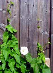 Keywords: climber winds bindweed wind greenhouse blossom bloom white wood fence weathered