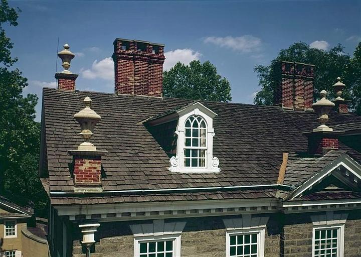 MAKE A MEME View Large Image Cliveden front roof.jpg Urns dormers and chimneys on the front roof of the w Cliveden Benjamin Chew House Cliveden estate home of Benjamin Chew Library of Congress Prints Photographs Online Catalog http //loc gov/pictures/item/pa1164/ HABS ...