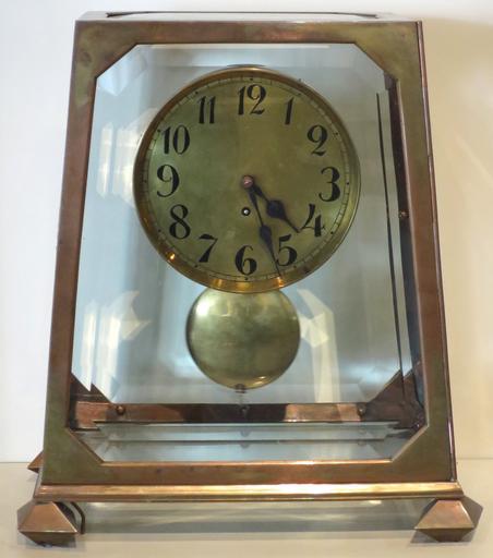 Keywords: Clock from living room of the Arthur Friedmann apartment, Vienna by Adolf Loos.JPG en Clock from living room of the Arthur Friedmann apartment Vienna by Adolf Loos 1906-07 brass bronze and glass LACMA own Wmpearl photo 2014 Adolf Loos Pendulum desk clocks Furnishings accessories in the Los Angeles County Museum of Art Cc-zero |