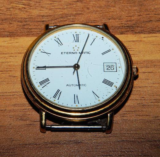Keywords: clock swiss watch eterna-matic automatic time about noble antique front side