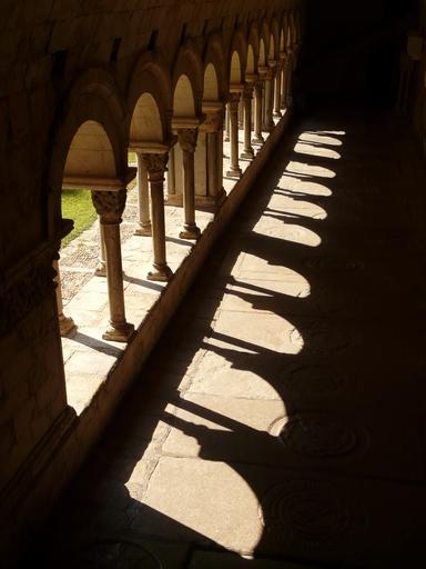 Keywords: cloister columnar arcade light shadow shadow play hispanic arch monastery