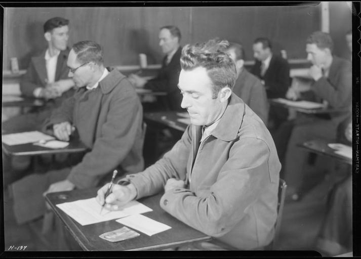 | Keywords: nara:arcid=532814 u.s. national archives usnationalarchives lewis hine lewishine blackandwhite monochrome indoor photo border black and white Original Caption: Close-up of an applicant for employment with the TVA taking the examination for skilled and unskilled labor at the high school building, Clinton, Tennessee, November 1933 U.S. National Archives’ Local Identifier: 142-H-197 Photographer: Hine, Lewis Subjects: New Deal, 1933-1939 Rural areas Tennessee (United States, North and Central America) state Water projects Persistent URL: research.archives.gov/description/532814 Repository: Still Picture Records Section, Special Media Archives Services Division (NWCS-S), National Archives at College Park, 8601 Adelphi Road, College Park, MD, 20740-6001. For information about ordering reproductions of photographs held by the Still Picture Unit, visit: www.archives.gov/research/order/still-pictures.html Reproductions may be ordered via an independent vendor. NARA maintains a list of vendors at www.archives.gov/research/order/vendors-photos-maps-dc.html Access Restrictions: Unrestricted Use Restrictions: Unrestricted Original Caption: Close-up of an applicant for employment with the TVA taking the examination for skilled and unskilled labor at the high school building, Clinton, Tennessee, November 1933 U.S. National Archives’ Local Identifier: 142-H-197 Photographer: Hine, Lewis Subjects: New Deal, 1933-1939 Rural areas Tennessee (United States, North and Central America) state Water projects Persistent URL: research.archives.gov/description/532814 Repository: Still Picture Records Section, Special Media Archives Services Division (NWCS-S), National Archives at College Park, 8601 Adelphi Road, College Park, MD, 20740-6001. For information about ordering reproductions of photographs held by the Still Picture Unit, visit: www.archives.gov/research/order/still-pictures.html Reproductions may be ordered via an independent vendor. NARA maintains a list of vendors at www.archives.gov/research/order/vendors-photos-maps-dc.html Access Restrictions: Unrestricted Use Restrictions: Unrestricted |