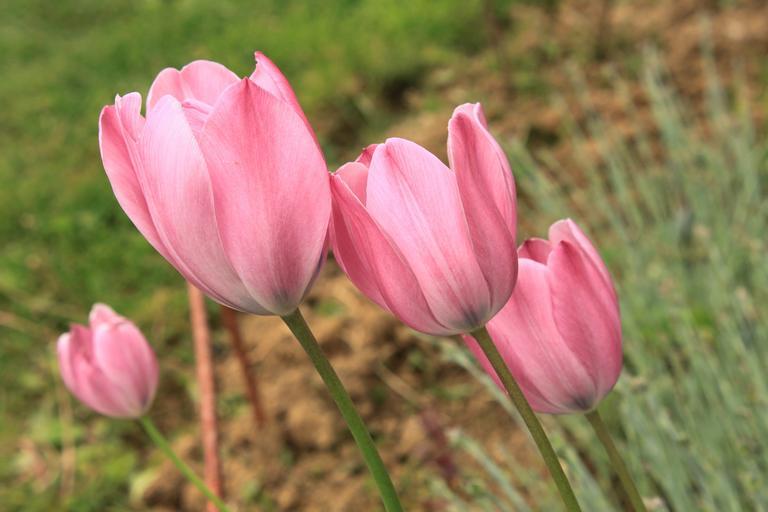 Keywords: close-up flowers green pink tulip plants spring