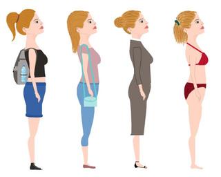 Keywords: clothes comic characters fashion female hair styles profile quartet side view woman