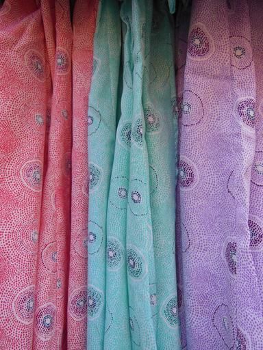 Keywords: clothing fabric spring fashion colors patterns turquoise purple red polka dot circle pattern