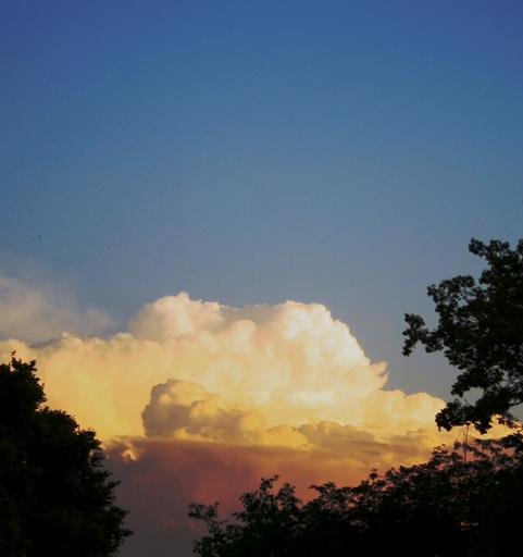 Keywords: cloud big cumulus white light puffy blue sky trees sunset