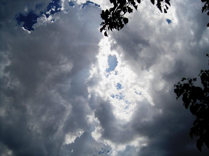Keywords: clouds dark gathering light penetrating shiny bright sky