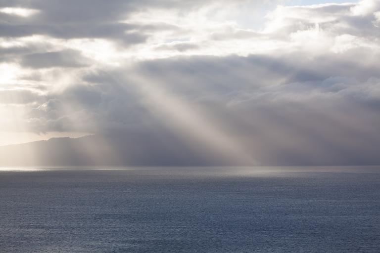 Keywords: clouds horizon sunbeam sea ocean mood blue silver grey blue fund background island