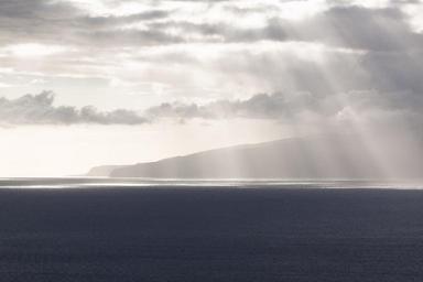 Keywords: clouds horizon sunbeam sea ocean mood blue silver grey blue fund background island