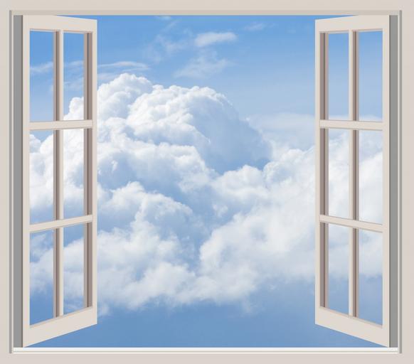 Keywords: clouds window frame open seen through window scene through window fluffy white clouds through window photo view scenic