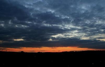 Keywords: cloudy sky translucent clouds streak of orange sunset vivid band glow evening sky