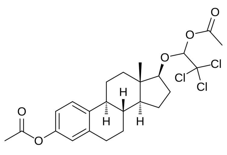 Keywords: Cloxestradiol acetate.svg Chemical structure of cloxestradiol acetate Own 11 50 10 January 2016 UTC Ed Edgar181 Estrogens Acetals Organochlorides Acetate esters