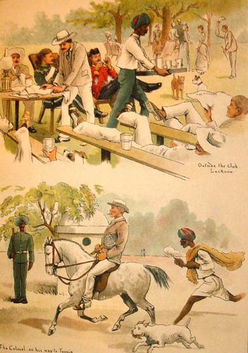 | Keywords: Club.jpg en Lloyd's Sketches of Indian Life London 1890 chromolithographs enhanced with gum arabic Arrival in Bombay native women-- visions of Lalla Rookh waking in the morning street scene Central India revenge for noise donkey-riders soldiers croquet dust-sprinkling at the club The Alligator's Dinner Hour Camping Himalayas families hunting porters various sketches 1 various sketches 2 various sketches 3 various sketches 4 Source ebay Aug 2005 1890 http //www columbia edu/itc/mealac/pritchett/00routesdata/1800_1899/dailylife_drawings/lloyd1890/lloyd1890 html Lloyd's Sketches PD-Art Uploaded with UploadWizard W Lloyd 'Lloyd's Sketches of Indian Life' London Chapman Hall 1890 |
