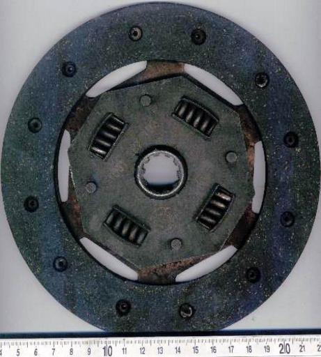 | Keywords: Clutchdisc.jpg clutch disc This is a typical clutch disc This particular clutch plate was made by Fichtel Sachs and fits the Ford Taunus V4 engine in a Saab 95/96/97 It has a number of interesting features The large flat ring that forms the perimeter of the clutch is the lining There are two such rings one on each side Their surface material is similar to that of brake pads One lining ring makes frictional contact with the pressure plate the other faces the flywheel Clutch discs typically have an orientation; if they are installed backwards the clutch will not operate properly The lining rings are riveted onto the blades of a fan-shaped part which can only be partially seen in the image This is called the marcel and the blades of this part are the marcel springs not to be confused with the plainly visible coil springs surrounding the center hub Like the blades of a fan the marcel springs are somewhat twisted and the lining rings are riveted to these blades in such a way that when the disc is squeezed between the flywheel and pressure plate the twisted blades flatten allowing the disc to compress A compressible clutch disc provides smoother more gradual engagement and reduces chatter Each of the six marcel spring blades has two holes for mounting the lining rings one hole for each ring Thus six rivets attach each lining ring to the marcel In this picture twelve rivets are visible around the facing ring but on closer inspection it's obvious that six of them are deeply recessed they are in fact rivets belonging to the opposite ring on the other side visible through large holes in the facing ring These holes in one ring provide tool access for mounting the other ring to the marcel This attachment pattern allows the marcel blades to twist and flatten when the rings are compressed together The teeth of the center hub are plainly visible These fit into splines on the transmission input shaft By means of these teeth the disc forces the shaft to rotate but can move back and forth on the shaft freely It is possible for the shaft or hub to rust causing the disk to become stuck to the shaft which results in intermittent difficulties in shifting A number of 4 coil springs are visible arranged in a circular pattern around the hub These damper springs provide elasticity between the toothed center hub and the clutch disc That is to say the hub can be slightly rotated independently of the disc a motion which is stiffly opposed by the compression of these springs The springs provide cushioning between the engine and transmission helping to absorb the forces of sudden engagement and vibration The coil springs are held in place by metal folds cut and bent out from the center plate One mode of clutch failure is that these folds can wear out allowing a spring to fall out and become lodged in the clutch preventing engagement On two of the springs wear spots can be clearly seen Clutch discs typically do not have individually serviceable parts When a clutch is serviced the entire disc is replaced as a unit The lining marcel springs and damper springs and their housing all are subject to fatigue and wear A high quality clutch that is operated correctly can last well in excess of 200 000 kilometers Either the marcel or damper springs or both may be absent from clutches used for racing for greater strength lighter weight and faster shifting de Kupplungsscheibe own 2005-06-04 w User Sonett72 and originally uploaded to w Image Clutchdisc jpg Sonett72 49901 bytes clutch disc Sonett72 Round Friction plate clutches Automobile clutches |