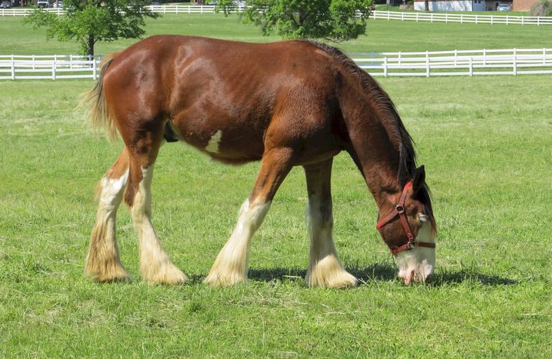 Keywords: clydesdale horse yearling young grazing pasture corral fence paddock farm portrait