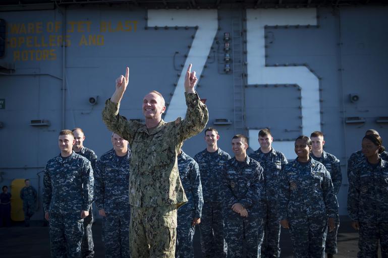 Keywords: CNO visits sailors 131128-N-WL435-749.jpg en Sailors aboard the aircraft carrier USS Harry S Truman CVN 75 sailors welcome aboard Chief of Naval Operations Adm Jonathan Greenert during an all-hands call with Master Chief Petty Officer of the Navy Mike Stevens on Thanksgiving Day Greenert and Stevens also shared dinner with the crew to spend time with members of their Navy-Marine Corps family during the Thanksgiving holiday period and show their support and appreciation for the many men and women who serve in the military U S Navy photo by Chief Mass Communication Specialist Peter D Lawlor/Released 2013-11-28 Petty Officer 1st Class Peter Lawlor https //www dvidshub net/image/1064380 131128-N-WL435-749 2013-12-02 23 17 GULF OF OMAN AT SEA PD-USGov-Military-Navy Jonathan W Greenert in 2013 USS Harry S Truman CVN-75 Images from DoD uploaded by Fæ |