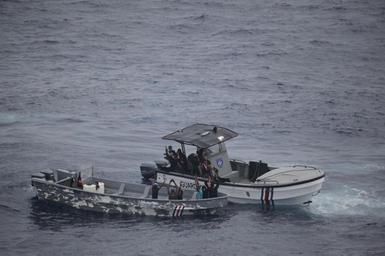 | Keywords: Coast Guard, Navy, Costa Rican Guard team interdicts $4 million of marijuana DVIDS1119656.jpg en WESTERN CARIBBEAN SEA - A Costa Rica Coast Guard vessel interdicts a suspected drug smuggling vessel stopped by a Coast Guard Law Enforcement detachment precision marksman aboard a U S helicopter launched from the USS Elrod July 3 2012 Following the interdiction the joint Coast Guard and Navy team recovered more than 4 900 bales of marijuana with a street value of more than 4 million that had been jettisoned U S Navy photo 2012-07-14 https //www dvidshub net/image/1119656 1119656 2013-12-12 22 46 CARIBBEAN SEA PD-USGov United States Coast Guard Law Enforcement Detachment Images from DoD uploaded by Fæ |