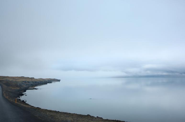 Keywords: coast sea shore ocean water tranquil bay peaceful calm clouds weather reflection coastline rocky rain gray atmospheric dull