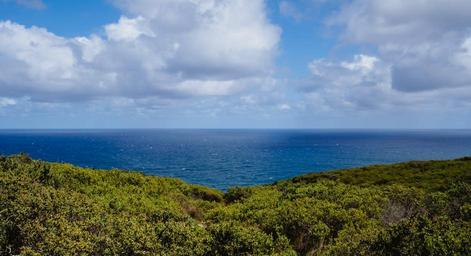 Keywords: coast shore vegetation ocean sea view summer clouds green vivid trees forest bay cove water sky seascape horizon outdoor