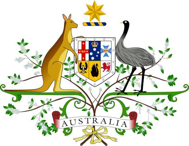 | Keywords: Coat of arms of Australia.svg validSVG Coat of Arms of Australia svg An interpretation of the en Australian coat of arms The Coat of Arms of Australia is the official symbol of Australia The initial coat of arms was granted by King Edward VII on May 7 1908 and the current version shown here was granted by King George V on September 19 1912 This page was sent to the Prime Minister of Australia's department with the following note His Excellency the Governor General directs the publication for general information of the enclosed certified copy of the Royal Warrant granting Armorial Ensigns and Supporters to the Commonwealth of Australia Andrew Fisher Prime Minister Г бот на Авст алија Сов еменный ге б Авст алии National Archives of Australia -- http //naa12 naa gov au/scripts/Imagine asp B 98430 I 35 item barcode 98430 page 35 The arms were granted in 1912 The page bearing the note is dated January 18 1913 qWerk http //www itsanhonour gov au/coat-arms/index cfm Use Additional usage regulations apply unrelated to copyright PD-Australia insignia Commonwealth Star of Australia svg SVG coats of arms of Australia coats of arms of Australia Black swans in heraldry Kangaroos in heraldry |
