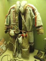 | Keywords: Coat, Samoyed - AMNH - DSC06203.JPG Exhibit in the Asian collection of the American Museum of Natural History Manhattan New York City New York USA Photography was permitted in the museum without restriction Daderot 2012-04-02 12 41 41 Daderot cc0 cc0 Asian objects in the American Museum of Natural History Fur clothing of Yakut people Reindeer clothing White fox clothing Fur bags Fur boots Snow hare clothing Fur clothing of Samoyedic people | ||||