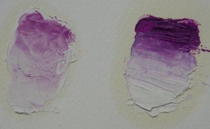 MAKE A MEME View Large Image Cobalt violet 1.png en Cobalt phosphate in oil; a standoil glaze on zinc white on the left the mass tone on the right 2016-11-15 own MWAK other versions cc-zero Cobalt compounds