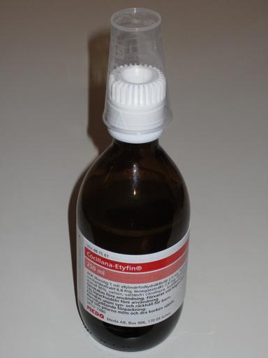 Keywords: Cocillana.JPG en A bottle of cough medicine Cocillana-Etyfin sv En flaska av hostmedicinen Cocillana-Etyfin own Xanor 2011-07-16 Cc-zero Pharmaceutical product packaging Antitussives Medical drinks