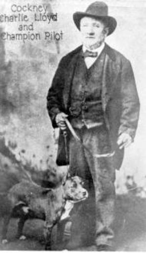 | Keywords: Cockney Charlie.jpg bild på Cockney Charlie med sin hund Pilot The dog is a Staffordshire bull terrier http //www warpittstaffords com/history html datum okänt men troligen år 1881 okänd skapare bilden florerar fritt på nätet jag är en av personerna bakom sidan som bilden är länkad till PD-old-70-1923 Staffordshire Bull Terrier Immigrants to the United States from the United Kingdom |