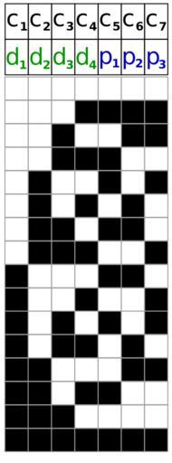 Keywords: Code Hamming 7Bit 02.svg binary code; Hamming-Code Own 2007-11 RosarioVanTulpe Hamming codes