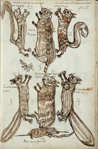 | Keywords: Codex canadensis, p. 28.jpg  fr Codex canadensis p 28<br> 1 ecureul suisse nomme dans le pais / oua ouingout <br>2 Ecureul volant sans pleume nomme / anascantaoue <br>3 Ecureul commun / jaune <br>4 Ecureul a la / Robe noire <br>5 Rat de La Virginie <br>6 Rat comun dans tout Le pais <br>7 Rat au museau Egu en 1 Swiss squirrel chipmunk called oua oningout in the country <br>2 Featherless flying squirrel named anascantaoue <br>3 Common yellow squirrel <br>4 Black-haired squirrel <br>5 Virginia rat <br>6 Rat common in the whole country <br>7 Sharp-nosed rat ca 1675-82 http //www collectionscanada gc ca/codex/026014-1100-f html Louis Nicolas 1634 - ca 1682 other versions PD-old-100 Codex canadensis Uploaded with UploadWizard |