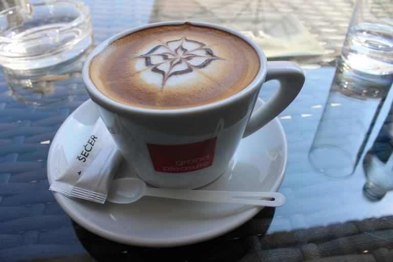 Keywords: coffee cappuccino sugar food drink cup caffeine espresso hot beverage sweet morning latte delicious tasty mug aroma close-up table cream foam restaurant milk fresh