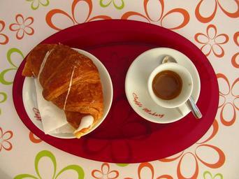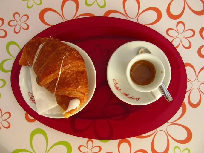 Keywords: coffee croissant breakfast colorful cup color coffee cup pastries italy