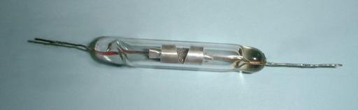 | Keywords: Cohere(Ag-Ni).jpg 合資会社 平 研究 (HIRAKAWA-IT)より提供 2007年11 22日 権利放棄されていることを直接確認 公開承諾 平 研究 製 証用 -ニッケル復元コヒーラ 2007年11 23日 デジタル修正版再提供 掲載変更 頼 A Branly coherer 1902 an early primitive radio wave detector invented by Edouard Branly in 1890 and used in the first radio receivers until about 1906 This version developed by Guglielmo Marconi consists of an evacuated glass tube with metal filings between two metal electrodes Radio waves from the antenna applied across the electrodes cause the filings to cohere reducing the resistance of the device This turns on a DC circuit attached to the electrodes powered by a battery that makes a click sound in earphones or a mark on a paper tape to record the Morse code signal The slanted faces of the electrodes allowed the gap between them and thus the sensitivity of the detector to be adjusted by rotating the tube Fritter 1902 Ein früher primitiver Radiowellenempfänger 1890 von Edouard Branly erfunden Wurde bis 1906 in den ersten Radio-Receivern verwendet Diese Version von Guglielmo Marconi entwickelt besteht aus einer Vakuum-Glas-Röhre mit Metallspanfüllung zwischen zwei Metallelektroden Radiowellen welche von der Radioantenne an die Elektroden geleitet werden richten die Metallspäne so aus dass der Widerstand der elektrischen Verbindung sinkt Dies aktiviert eine von einer Batterie getriebene angeschlossene Gleichstromschaltung die ein Click-Geräusch in einem Kopfhörer oder eine Markierung auf einem Papierstreifen erzeugt um so das Morsesignal aufzuzeichnen Durch die abgeschrägten Elektroden kann durch Rotation der Röhre die Lücke zwischen diesen und damit die Empfindlichkeit des Empfängers eingestellt werden Cohéreur de Branly 1902 Tube de verre dans lequel on fait le vide contient entre deux tampons métalliques quelques fragments de limaille peu oxydable La résistance du tube à limaille diminue brusquement dans de fortes proportions en présence d'une onde hertzienne le traversant la limaille est cohérée Ce détecteur d'ondes hertziennes a permis de réaliser les premières liaisons radios à grande distance en radiotélégraphie ja wikipedia 2007-11-22 ENG0000 wikipedia ja 平 研究 gallery Récepteur cohéreur enregistreur à tube de limaille <gallery> File Recepteur tube limaille JPG </gallery> original upload log page ja wikipedia Cohere 28Ag-Ni 29 jpg 2007-11-23 15 49 ENG0000 768×237×8 24315 bytes <nowiki> 平 研究 2007年11 23日 合資会社平 研究 より提供 画像デジタル処理修正版 証用 型復元コヒーラ 電極 ニッケル・ 金属粉 低 空封止 </nowiki> 2007-11-22 15 32 ENG0000 768×237×8 27018 bytes <nowiki>合資会社 平 研究 (HIRAKAWA-IT)より提供 2007年11 22日公開許諾 -ニッケル復元コヒーラ </nowiki> Coherers |