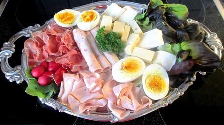Keywords: cold cuts eat meat plate brunch egg cheese delicious vespers dinner