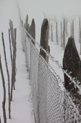 Keywords: cold fence frozen iron white wire winter