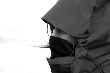 Keywords: cold mountain wrap face women portrait black and white person people scarf