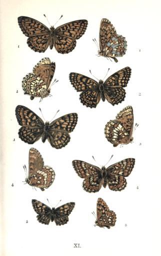 Keywords: Colemans British Butterflies Plate XI.png Plate XI from W S Coleman's British Butterflies 1860 1 Small Pearl-bordered Fritillary 2 Glanville Fritillary 3 Pearl-bordered Likeness Fritillary modern Heath Fr 4 Greasy Fritillary Marsh Fr 5 Duke of Burgundy Fritillary 2010-10-11 Keith Edkins W S Coleman's British Butterflies PD-old Coleman's British Butterflies Files from Project Gutenberg Boloria selene Melitaea cinxia illustrations Melitaea athalia Euphydryas aurinia Hamearis lucina |