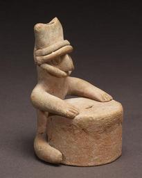 | Keywords: Colima - Group of Figurines and Architectural Model - Walters 20092033 - Three Quarter (2) (3).jpg Narrative groupings of figurines in architectural settings have been found throughout Mesoamerica in contexts dating as early as the Middle Formative Period 900-400 BCE Some are made from jadeite and similar precious stones such as an Olmec ceremonial scene of sixteen figurines arranged in a semicircle and framed by six column-like celts Others are composed of modeled ceramic figures depicting a burial or ancestor veneration rite complete with elaborately dressed performers and musicians like that found above Tomb 103 at Monte Albán Oaxaca The objects that constitute these figure groups generally share the same aesthetic style and manufacturing technique which suggests they were made at the same time as a single artistic statement The disparate artistic styles and technical features suggest that these nine Colima figurines and one building model might be a modern grouping although dissimilar figurines have been documented in figure groupings found in the same tomb In this instance archaeological confirmation is not available The figurine types represent at least two styles from Colima-Jalisco including the Tuxcacuesco-Ortices type nos 33 3 33 8 and 33 9 and two from the Colima-Jalisco border region nos 33 4 and 33 5 The house model no 33 1 depicts a typical West Mexican domicile or ceremonial building without its basal earthen platform No architecture of comparable form is found in the region because these structures were made of perishable materials; only the earth-and-stone platforms have survived although many have been destroyed by modern agricultural activities These architectural models thus document the lost architectural heritage of ancient West Mexico The figures portray men and women performing both ritual and daily activities from mothers tending children nos 33 3 and 33 8 and grinding maize no 33 7 to men drumming no 33 6 or sitting regally and brandishing a fanlike scepter no 33 9 A seated hunchback figure which also is a whistle sports an elaborate head wrap and fine jewelry no 33 10 A dog-standing-atop-a-dog sculpture and two seated men with elongated heads complete the group nos 33 2 33 4 and 33 5 This elongated-head figurine style is associated with the northern Colima-Jalisco region and dates to the later years of the Comala phase ca 200-300 CE 200 BC-AD 400 earthenware 1 cm 16 9 13 1 13 7 ; 2 H 3 3/4 x L 3 13/16 x W 2 1/16 in 9 5 x 9 7 x 5 3 cm ; 3 cm 10 3 7 7 4 8 ; 4 cm 7 1 4 1 2 3 ; 5 cm 7 3 4 7 2 3 ; 6 cm 9 1 6 2 6 3 ; 7 cm 14 6 7 8 12 7 ; 8 cm 12 1 8 4 5 5 ; 9 cm 8 9 6 9 10 1 ; 10 cm 7 5 1 5 2 accession number 2009 20 33 80188 John G Bourne date and mode of acquisition unknown Walters Art Museum Gift of John Bourne 2009 place of origin Colima Mexico <gallery> File Colima - Group of Figurines and Architectural Model - Walters 20092033 - Three Quarter jpg File Colima - Group of Figurines and Architectural Model - Walters 20092033 - Three Quarter 2 jpg </gallery> Walters Art Museum license Objects from Colima in the Walters Art Museum Media contributed by the Walters Art Museum needs category review |