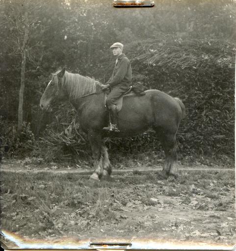 | Keywords: Coll jas berkers-493.jpg nl Ruiter op Belgisch trekpaard voor een mutsaard mogelijk in Deurne Foto Jas Berkers beschikbaar gesteld door Jan Joosten own Elias Berkers ~ 1940 Jan Joosten People of Deurne Netherlands Belgian draft horse Equestrian portrait photographs Draft horses in riding use Horses in World War II Black and white photographs of horses |