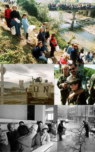 | Keywords: Collage Siege of Sarajevo.jpg en Collage of the 1992-1995 siege of Sarajevo clockwise from the top Residents of Sarajevo stand in line to get water <br>A Serb commander puts a gun to the head of his son as he and his friends joke around while waiting for a prisoner exchange near Sarajevo summer of 1992 <br>winter of 1992-1993 Cutting branches from Sarajevo's trees -- often at risk of being sniped -- as fuel for stoves to heat water and provide occasional meagre warmth Winter brought freezing indoor temperatures often even colder than outside <br> Residents of the Baščaršija Sarajevo old town district wait to receive rations from a UNHCR humanitarian aid delivery their first in 40 days <br>A typical street scene 2012-02-14 File Evstafiev-bosnia-sarajevo-water-line jpg<br> File Evstafiev-bosnia-serbs-boy-gun-to-head jpg<br> File Sarajevo Siege Collecting Firewood 2 jpg<br> File Sarajevo Siege Queue for UNHCR-rations jpg<br> File Opp mot Sniper Alley jpg Фото ихаил Евстафьев Photo Mikhail Evstafiev <br> Christian Maréchal cc-zero Siege of Sarajevo Montages of Sarajevo |