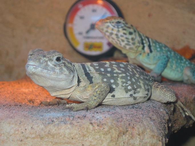 Keywords: Collared-lizards.jpg Koreth This is a pair of Crotaphytus collaris collared lizards a female in the foreground and a male with aquaflame coloration in the background I took this photo on March 12 2004 Crotaphytus collaris
