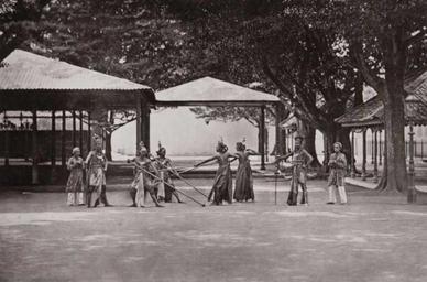 | Keywords: COLLECTIE TROPENMUSEUM Dansers aan het hof van de Sultan van Jogjakarta TMnr 60046825.jpg nl Foto Dansers aan het hof van de Sultan van Jogjakarta ca 1884 institution Tropenmuseum KIT-source 60046825 Creator Kassian Cephas KIT-license PD-old-100 Men of Yogyakarta Images from KIT Voorstelling Object - lansen Dancers from Indonesia 19th-century photographs of Indonesian dance 1884 Kraton of Yogyakarta Photographs by Kassian Cephas Black and white photographs | ||||