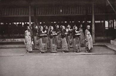 | Keywords: COLLECTIE TROPENMUSEUM Draagsters van de rijkssieraden van de Sultan van Jogjakarta TMnr 60046811.jpg nl Foto Draagsters van de rijkssieraden van de Sultan van Jogjakarta ca 1884 institution Tropenmuseum KIT-source 60046811 Creator Kassian Cephas KIT-license PD-old-100 Women of Yogyakarta Images from KIT Voorstelling Activiteit / Functie - status- rang- en waardigheidstekenen identificatiemiddelen Images from KIT Voorstelling Object - hofkleding Images from KIT Voorstelling Object - ceremoniƫle objecten Images from KIT Voorstelling/iconografie - Cultuur samenleving Photographs by Kassian Cephas Kraton of Yogyakarta Black and white photographs |