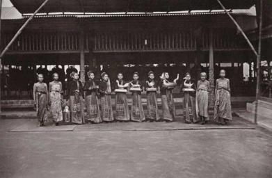 | Keywords: COLLECTIE TROPENMUSEUM Draagsters van de rijkssieraden van de Sultan van Jogjakarta TMnr 60046812.jpg nl Foto Draagsters van de rijkssieraden van de Sultan van Jogjakarta ca 1884 institution Tropenmuseum KIT-source 60046812 Creator Kassian Cephas KIT-license PD-old-100 Images from KIT Voorstelling Activiteit / Functie - status- rang- en waardigheidstekenen identificatiemiddelen Images from KIT Voorstelling Object - ceremoniƫle objecten Images from KIT Voorstelling/iconografie - Groep Images from KIT Voorstelling/iconografie - Cultuur samenleving Photographs by Kassian Cephas Kraton of Yogyakarta Black and white photographs |